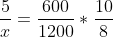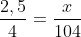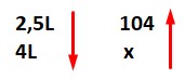 Como se pode ver na relação das flechinhas vermelhas acima, quanto menos litros de água no balde (flechinha para baixo), maior o número de viagens (flechinha para cima). Logo, x passa para cima na fração e 104 passa para baixo como segue abaixo: