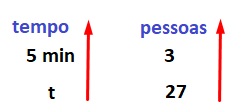 Um caixa gasta 5 minutos para 3 pessoas. Quanto tempo gastará para 27 pessoas?