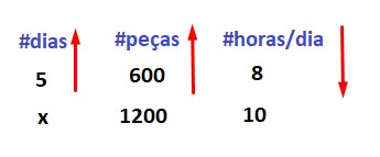Em 5 dias, produz 600 peças tralhando 8h por dia. Se trabalhasse 10 h/dia, quantos dias gastaria para produzir 1200 peças?